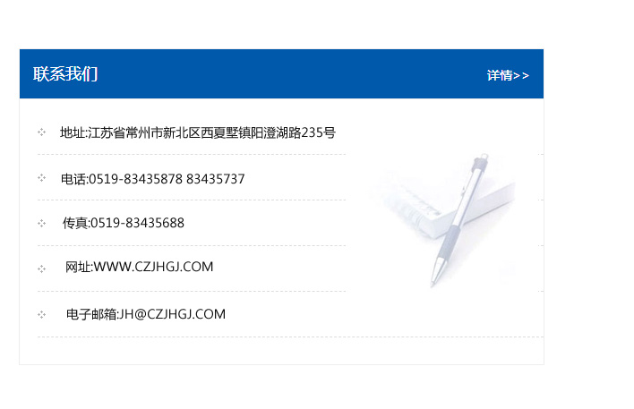 傳真:0519-83435688    郵編:213135    網址:WWW.czjhgj_com.xmmantu.com    電子郵箱:JH@czjhgj_com.xmmantu.com